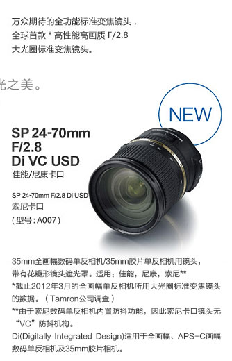 是一支覆蓋廣角24mm至70mm高畫質高性能大光圈標準變焦鏡頭。