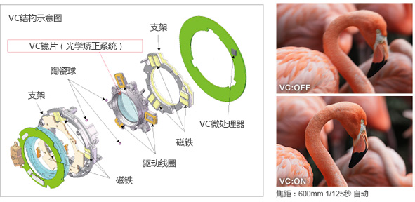 VC防抖技術(shù)騰龍獨(dú)有的VC防抖補(bǔ)償技術(shù),采用3組驅(qū)動(dòng)線圈,通過(guò)3個(gè)陶瓷球以電磁驅(qū)動(dòng)方式控制補(bǔ)償鏡片(VC鏡片),實(shí)現(xiàn)低摩擦的平滑運(yùn)動(dòng),提供穩(wěn)定的取景器影像。