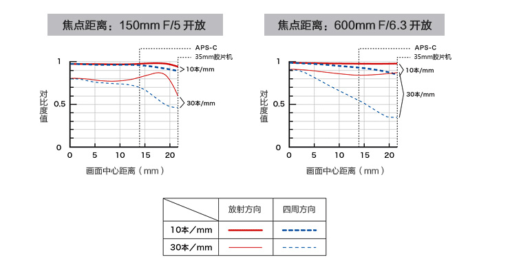 隨著畫面的放射方向(實(shí)線)和圓周方向(虛線)的走向,弧線彎曲也會(huì)出現(xiàn)差別。而為了獲得解像敏銳、使畫面整體效果出色的優(yōu)越性能,取得各曲線之間的平衡至關(guān)重要。