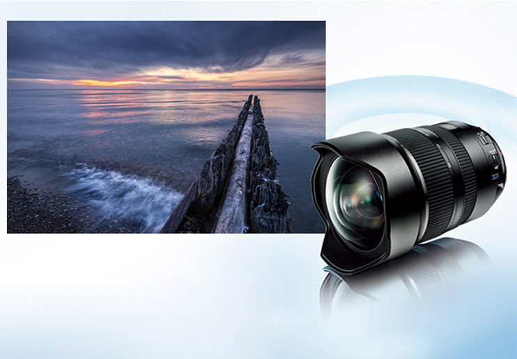 采用最新的光學(xué)設(shè)計(jì),對(duì)超廣角鏡頭常見的桶形畸變和放大色差等進(jìn)行高度補(bǔ)正。凹形的LD鏡片的使用能有效補(bǔ)正放大色差,獲得清晰銳利影像,使廣角端的高畫質(zhì)表現(xiàn)成為可能。