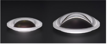 | XGM鏡片(上圖右)與一般玻璃鑄造非球面鏡片(上圖左)相比,非球面更大 | |
