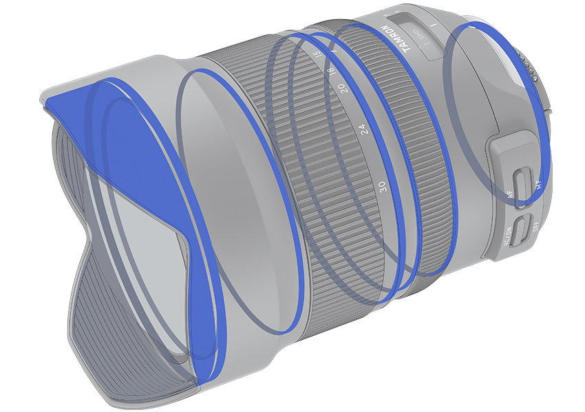 以往的復(fù)合鍍膜較難做到膜的平整均一,導(dǎo)致鏡片邊緣可能出現(xiàn)鬼影。全新開發(fā)AX(Anti-reflection eXpand)抗反射鍍膜,通過騰龍獨(dú)有的蒸鍍技術(shù),在大曲率凸面上,也能做到鍍膜均勻,使鏡片周邊與鏡片中心具有同等的反射率及色彩表現(xiàn)。針對容易被有害光入侵的廣角鏡頭,盡可能排除眩光和鬼影的發(fā)生,帶來了清晰通透,震撼的畫質(zhì)表現(xiàn)。拍攝者可淋漓盡致地展現(xiàn)創(chuàng)作意圖。