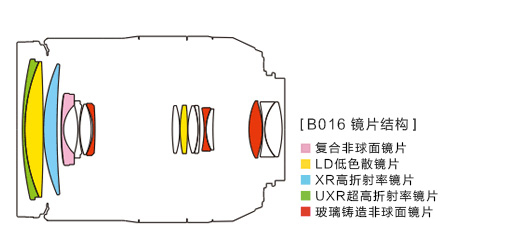 由12組16枚鏡片組成,使用了3枚玻璃鑄造非球面鏡片、2枚LD低色散鏡片和1枚UXR超高折射率鏡片。采用了復合鍍膜技術,大幅抑制眩光和鬼影,確保清晰銳利圖像。而先進的機械設計工藝的運用,使其仍然保有令人驚嘆的緊湊輕便外形。 |