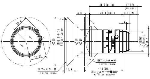 | 濾鏡螺紋口徑 | M58 P=0.75mm | ||