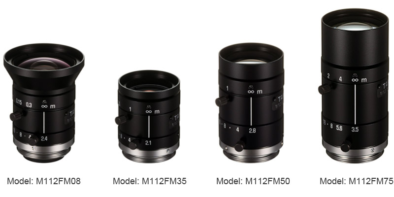 至此,1/1.2”(M112FM系列)中有8mm F/2.4、12mm F/2.0、16mm F/2.0、25mm F/1.8、35mm F/2.1、50mm F/2.8、75mm F/3.5多種焦距的共7個(gè)型號(hào)可供選擇。