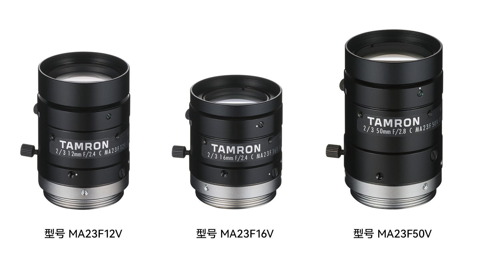 綜合光學(xué)產(chǎn)品制造企業(yè)騰龍公司,將于2022年5月10日推出MA23F12V(焦距12mm)、MA23F16V(焦距16mm)和MA23F50V(焦距50mm)三款機(jī)器視覺(jué)用定焦鏡頭,該系列鏡頭可對(duì)應(yīng)2/3"圖像傳感器,具備800萬(wàn)像素高分辨率,并擁有φ29mm的緊湊外形尺寸。至此,對(duì)應(yīng)2/3"的800萬(wàn)像素機(jī)器視覺(jué)鏡頭MA23F系列,加上先前已經(jīng)上市的MA23F08V(焦距8mm)、MA23F25V(焦距25mm)、MA23F35V(焦距35mm),現(xiàn)共有6種焦距的產(chǎn)品,可為不同應(yīng)用提供廣泛選擇。