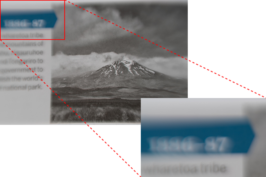 2. 周邊畫質(zhì)有所下降。若對焦于畫面周邊的文字,將出現(xiàn)畸變及拉伸現(xiàn)象。
