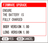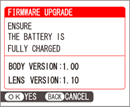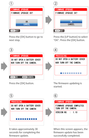 3) 按照相機(jī)屏幕中的提示進(jìn)行固件更新。